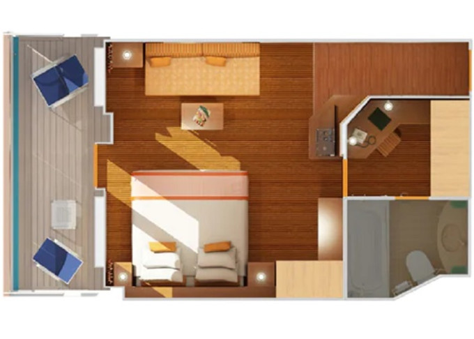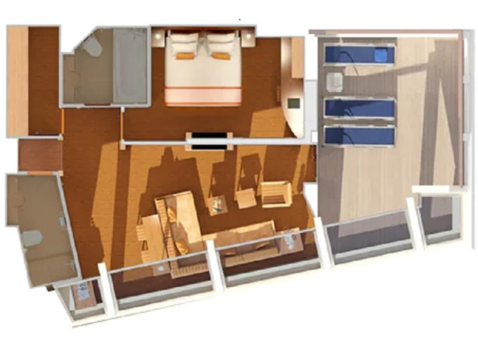 | OS - Ocean Suite 26 m² + balkón 6 m². 7,9. paluba. Výhody Suite. | 1 494 € 747 € za osobu | ||