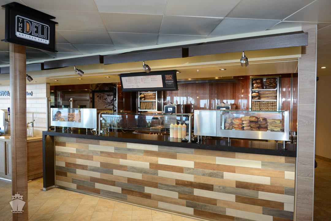 - Bufetová reštaurácia Lido Marketplace s Carnival Deli option, Pizzeria del Capitano, the á la carte Seafood Shack, e nový Swirls soft.