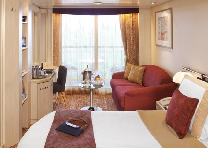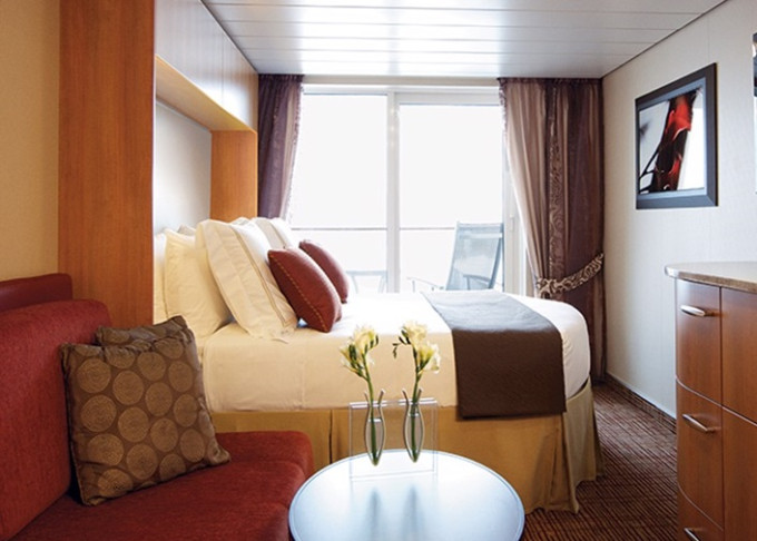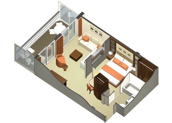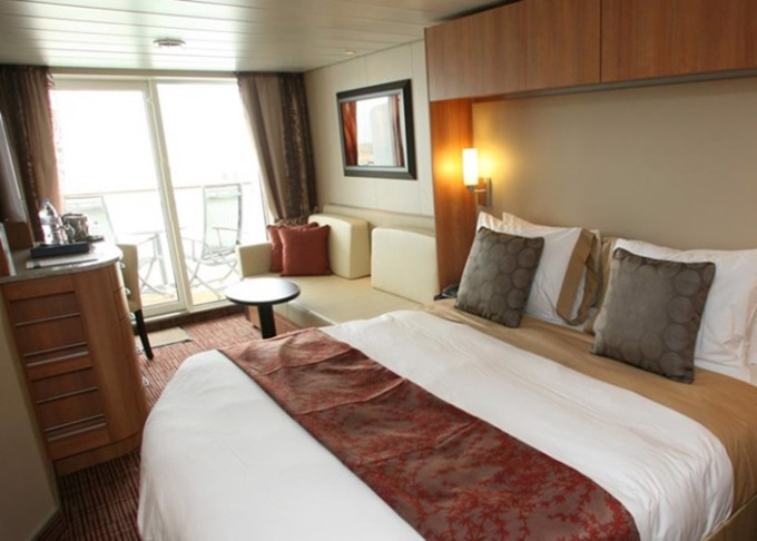 - Kajuty sú umiestnené v blízkosti lodného Spa. K ich vybaveniu patrí posilnený systém vzdušnej filtrácie, posteľ Queen-Size (v kategóriách Edge King-Size), veľké zasúvacie sklenené dvere, exkluzívne posteľné prádlo eXhale®, veľkorysé skladovacie priestory.