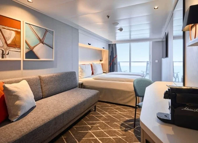 BAUR - Kajuta s balkónom PUR 17 m² + balkón 5 m². Max 4 osoby. Cenový model PUR. 2 158 € 1 079 € za osobu
